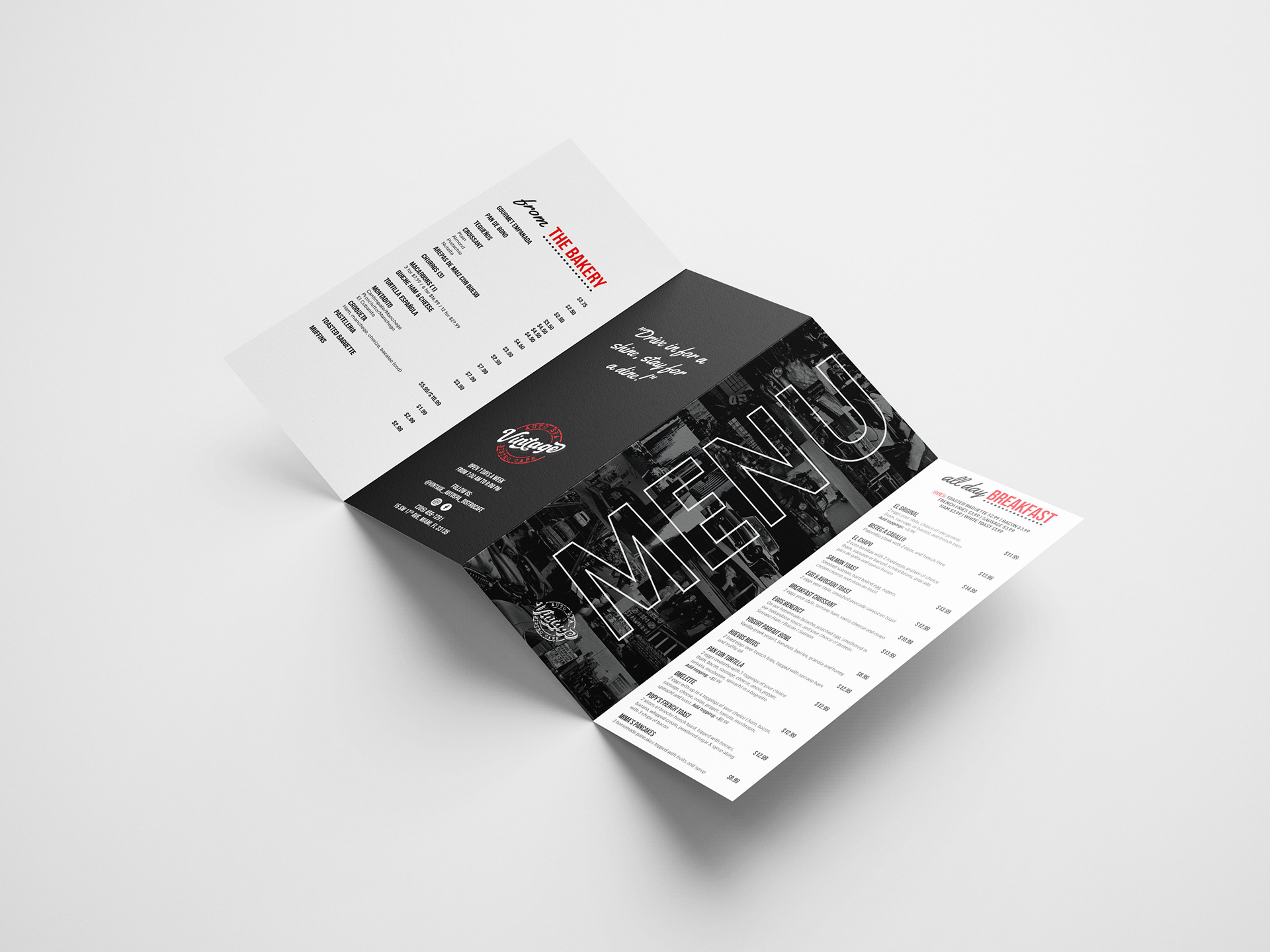 Created two distinct menu layouts for the client: a gatefold-style menu and a full-size 11x14-inch menu, each tailored to fit the client's specifications.